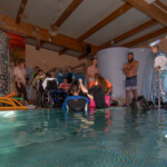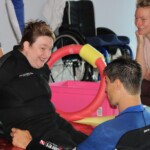 Es ist immer ein sehr besonderes Erlebnis. Die Tauch-Lehrer sind sehr nett und verstehen viel davon, wie sie mit Menschen umgehen, die eine starke Behinderung haben. Diese Menschen konnten ganz langsam lernen, sich im Wasser wohl zu fühlen. Manchmal haben sogar zwei Tauch-Lehrer zusammen einer Person geholfen. So konnten die Menschen fühlen, wie leicht man sich im Wasser bewegen kann. Mehr als eine Stunde lang konnten sie im Wasser sein, ohne Schmerzen, ohne steif zu sein oder Krämpfe zu bekommen. Auch die Helfer der Teilnehmer durften ins Wasser kommen, um zu helfen. Es war eine sehr schöne Aktion, die allen Spaß gemacht hat. Zum Schluss haben alle zusammen etwas gegessen und getrunken und mit den Leuten vom Tauchturm Seiersberg geredet. Alle waren sehr glücklich und haben sich schon auf das nächste Mal im Herbst gefreut.